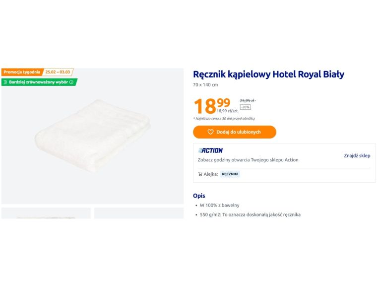 Promocja w Action. Ręczniki Hotel Royal w atrakcyjnych cenach