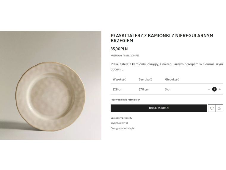 Dla porównania, w Zara Home dostępny jest płaski talerz z kamionki w kremowym kolorze, o większej średnicy – 27,8 cm – i z nieregularnym, dekoracyjnym brzegiem. Jego organiczna linia oraz delikatnie cieniowana powierzchnia nadają mu bardziej artystycznego charakteru. To propozycja dla osób, które cenią efekt „handmade” i dopracowane detale. Cena 35,90 zł odzwierciedla pozycjonowanie marki oraz bardziej wysmakowany design. Zarówno Pepco, jak i Zara Home sięgają po ten sam materiał, jednak różnice w estetyce, rozmiarze i wykończeniu są zauważalne już na pierwszy rzut oka.