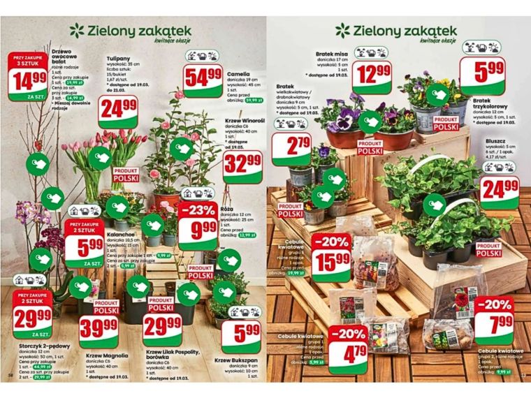 Choć bratki są największym hitem, oferta ogrodowa Dino jest znacznie szersza i pozwala skompletować niemal cały zestaw roślin na sezon. W oczy rzucają się chociażby tulipany w bukietach po 15–20 sztuk za 24,99 zł, które od razu wprowadzają wiosenny klimat do domu. Dla osób myślących o czymś trwalszym przygotowano krzewy – winorośl za 32,99 zł, magnolię za 39,99 zł czy lilak pospolity i borówkę w cenie 29,99 zł. Do tego dochodzą róże przecenione o 23%, które można kupić już za 9,99 zł.