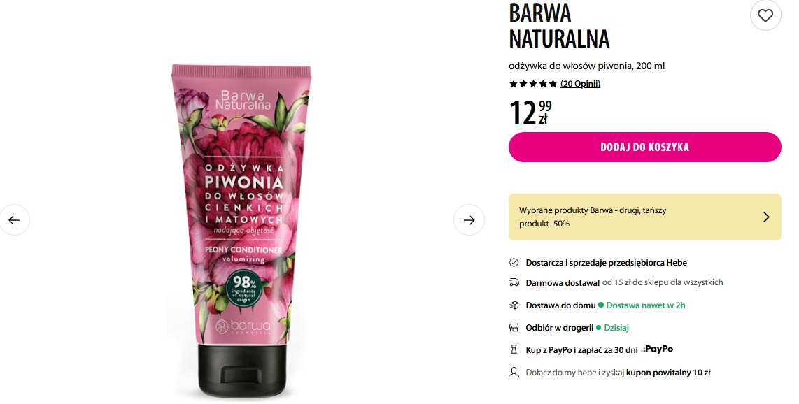 Odżywka do włosów z Hebe pachnie jak piwonie, nawilża i dodaje objętości. Kosztuje tylko 12,99 zł