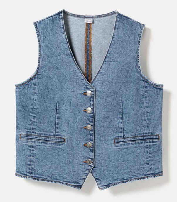 Oprócz koszulek w kolekcji pojawiają się elementy, które pozwalają budować pełne stylizacje. Jeansowa kamizelka w klasycznym odcieniu denimu to propozycja na warstwowe zestawy – prosta, ponadczasowa i łatwa do łączenia z innymi elementami garderoby. Jej cena to 40 zł, co czyni ją jednym z kluczowych, a jednocześnie najbardziej uniwersalnych elementów kolekcji.