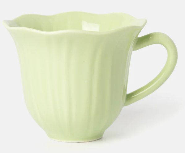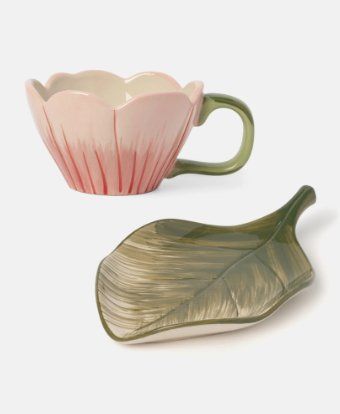 Jeżeli lubicie bardziej finezyjne propozycje, koniecznie zwróćcie uwagę na trochę droższą propozycję za 25 zł. To filiżanka, która wygląda jak kwiatowy kielich i stoi na spodku w kształcie liścia. W ofercie są także szklane kubki, słoiki i duży dzbanek w kwiaty.