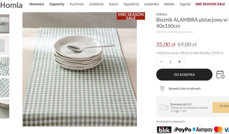 Bieżnik na stół w mega niskiej cenie. Homla szaleje z wyprzedażową ofertą