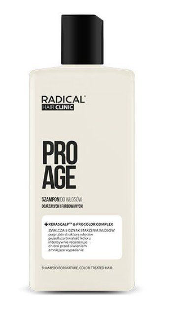 Kiedy słyszymy o szamponie do siwych włosów, na myśli mamy zwykle produkt tonujący, który ma za zadanie usunąć żółtawy odcień z kosmyków. Ale kolor to przecież nie wszystko. Na półkach Hebe możecie znaleźć szampon do włosów dojrzałych, zaprojektowany właśnie z myślą o osobach, które już mają siwe włosy i utrata naturalnego koloru to tylko jedno z ich zmartwień. Jak obiecuje producent szamponu Radical Pro Age, kosmetyk ten ma intensywnie pielęgnować siwe włosy oraz opóźniać oznaki ich starzenia. Przywraca im blask, nawilżenie oraz regeneruje skórę głowy.