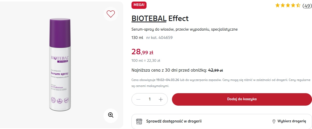 Specjalistyczne serum Biotebal Effect z Rossmanna idealnie sprawdzi się także dla osób o wrażliwej skórze. Naturalny skład jest bowiem wyjątkowo delikatny i nie powoduje podrażnień. Z informacji na stronie internetowej wynika, że promocja w Rossmannie potrwa jeszcze do 4 marca włącznie.