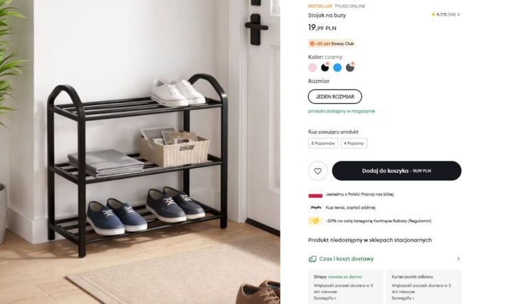 Nie bez powodu ten stojak na buty z Sinsay ma status bestsellera. Zebrał aż 168 opinii i średnią ocenę na poziomie 4,7/5, co mówi samo za siebie. W komentarzach powtarza się kilka rzeczy: że jak na tak niską cenę jest naprawdę solidny, że buty dobrze się trzymają i że całość jest bardzo praktyczna. Wiele osób podkreśla też, że montaż zajmuje dosłownie kilka minut i nie sprawia żadnych problemów nawet osobom, które na co dzień nie składają mebli.
