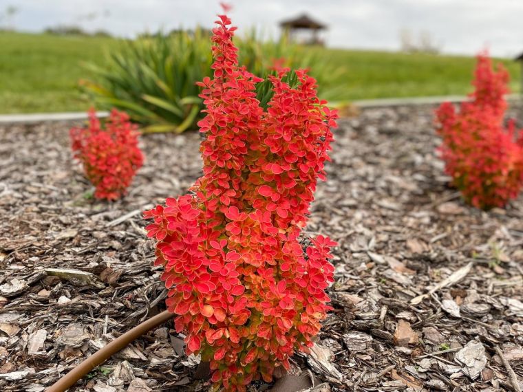 Berberysów jest wiele, ale to właśnie odmiany o kolumnowym pokroju najbardziej nadają się do ogrodów, gdzie liczy się efekt i funkcjonalność. Berberys Thunberga ‘ERECTA’, ‘RED ROCKET’ czy ‘GOLDEN TOWER’ rosną pionowo, tworząc zwarte kolumny złożone z liści w różnych odcieniach: od jaskrawej zieleni po głęboką purpurę. Jesienią każdy z nich zmienia barwę, co sprawia, że żywopłot z tych roślin jest sezonową ozdobą ogrodu. Do tego dochodzą drobne, żółte kwiaty wiosną i czerwone owoce jesienią – dekoracyjne i chętnie zjadane przez ptaki.