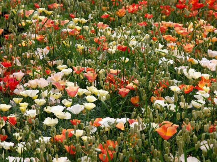 Mozaika kolorów - maczek kalifornijski; fot. joe/Adobe Stock