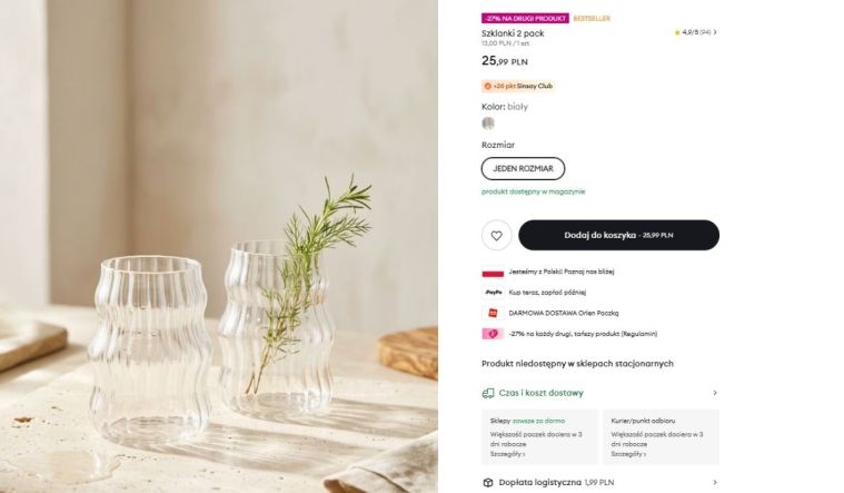 W ofercie sieciówki pojawił się zestaw, który trudno zignorować, nawet jeśli na co dzień nie zwracasz większej uwagi na dodatki do kuchni. To szklanki z Sinsay sprzedawane w 2-paku za 25,99 zł, wykonane w 100% ze szkła i o pojemności aż 530 ml, co czyni je naprawdę praktycznymi na co dzień.