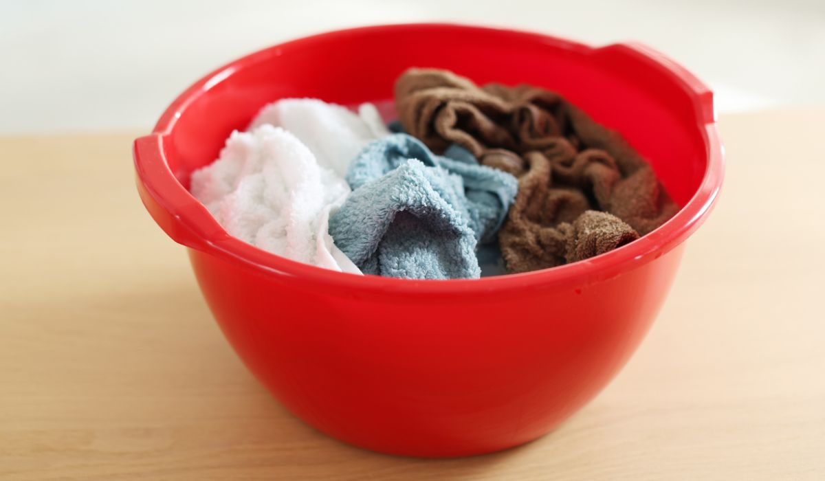 Ten domowy sposób na miękkie i pachnące ręczniki jest naprawdę prosty i nie wymaga żadnego wysiłku. Nalewam do większej miski albo wanny ciepłą wodę. Nie musi być gorąca, wystarczy taka, która pomoże składnikom szybciej zadziałać.