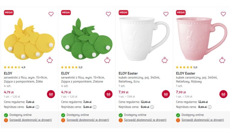 Wiele wskazuje na to, że to końcówki kolekcji, dlatego ceny są tak atrakcyjne. Jeśli ktoś planuje Wielkanoc z wyprzedzeniem albo chce zrobić sprytne zakupy, to właśnie teraz jest najlepszy moment.