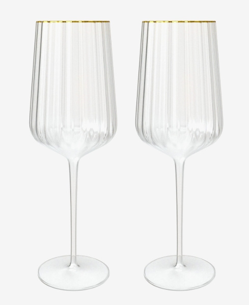 Ryflowane kieliszki z tej samej serii stanowią naturalne uzupełnienie szklanek i są równie estetyczne. Wysoka nóżka, smukły kielich i ryflowana powierzchnia tworzą spójną całość. Złoty rant dodaje całości eleganckiego wykończenia. Zestaw składa się z 2 sztuk i kosztuje 22 zł.