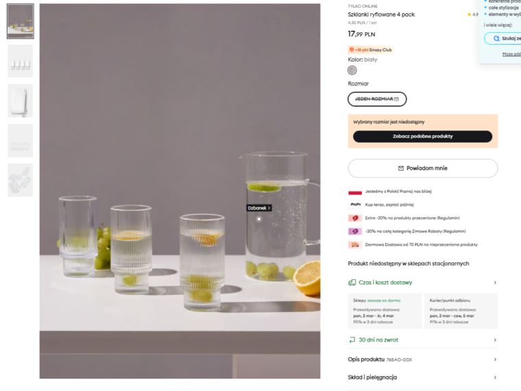 Oczywiście Zara Home stawia na bardziej designerskie wykonanie i często wykorzystuje grubsze szkło albo dodatkowe dekoracje, co wpływa na wyższą cenę. Ale jeśli szukasz połączenia dobrego wyglądu i przystępnej ceny, ryflowane szklanki z Sinsay są propozycją idealną dla osób, które chcą odświeżyć zastawę stołową bez przepłacania.