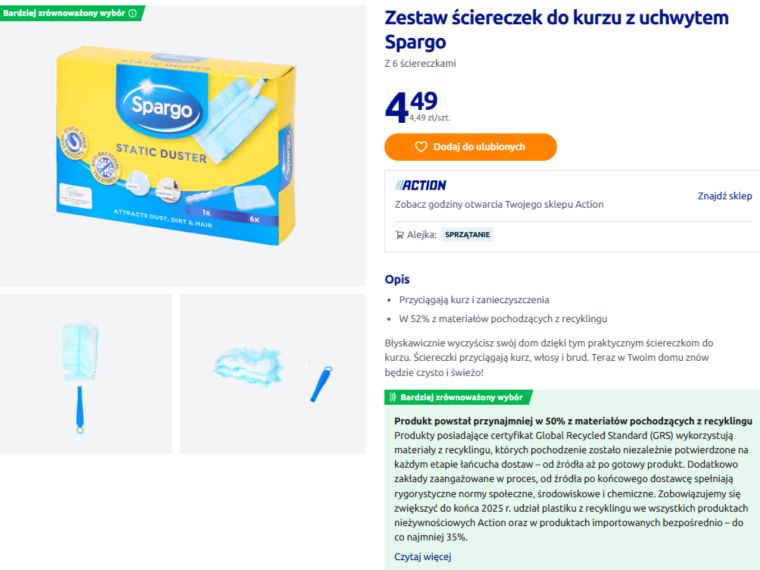 Warto też zwrócić uwagę na skład produktu. Aż 52% materiałów użytych do produkcji pochodzi z recyklingu. To mały krok w stronę bardziej odpowiedzialnych wyborów, nawet przy codziennych zakupach. Tania ściereczka nie musi oznaczać bylejakości.