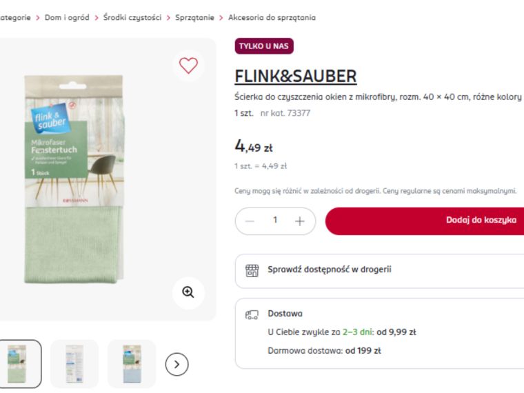 Jednym z ciekawszych produktów tego typu są ściereczki Flink & Sauber dostępne w Rossmannie. Mają rozmiar 40 × 40 cm i kosztują zaledwie 4,49 zł. Na pierwszy rzut oka to zwykły, niepozorny produkt. W praktyce jednak potrafi znacząco ułatwić sprzątanie.