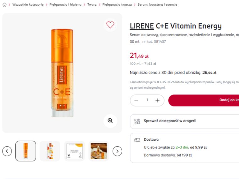 Standardowa cena tego kosmetyku wynosi 26,99 zł, jednak obecnie w drogerii Rossmann można kupić to serum za 21,49 zł. Promocja obowiązuje do 25 marca lub do wyczerpania zapasów, dlatego wiele osób zwraca teraz na nie szczególną uwagę.