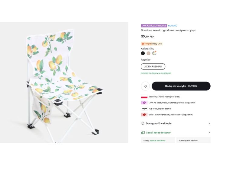 Sinsay znów to zrobił i trafił w wakacyjny trend. Składane krzesło z motywem cytryn kosztuje tylko 39,99 zł