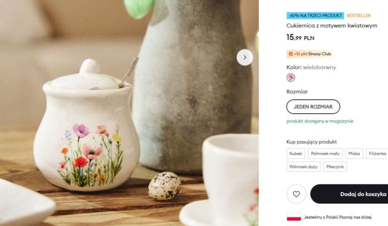 Lubię takie produkty najbardziej, bo nie udają luksusu na siłę, tylko po prostu wyglądają dobrze. Nie są przekombinowane, nie męczą wzoru, nie sprawiają wrażenia tandety. Ta cukiernica ma w sobie lekkość i wdzięk, który od razu przyciąga wzrok. Jeśli więc szukasz czegoś niedrogiego, co zrobi wrażenie na Wielkanoc i zostanie z tobą na dłużej, to właśnie jedna z tych rzeczy, które naprawdę warto wrzucić do koszyka.
