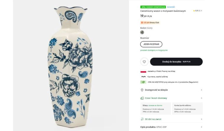 Największe zaskoczenie to jednak cena – wazon kosztuje zaledwie 19,99 zł, co czyni go jedną z tych okazji, obok których trudno przejść obojętnie. To propozycja dla osób, które chcą szybko odświeżyć przestrzeń niewielkim kosztem, a jednocześnie nie rezygnować z efektu „wow”. Warto dodać, że to model typowo dekoracyjny, idealny na suszone kwiaty lub jako samodzielna ozdoba.