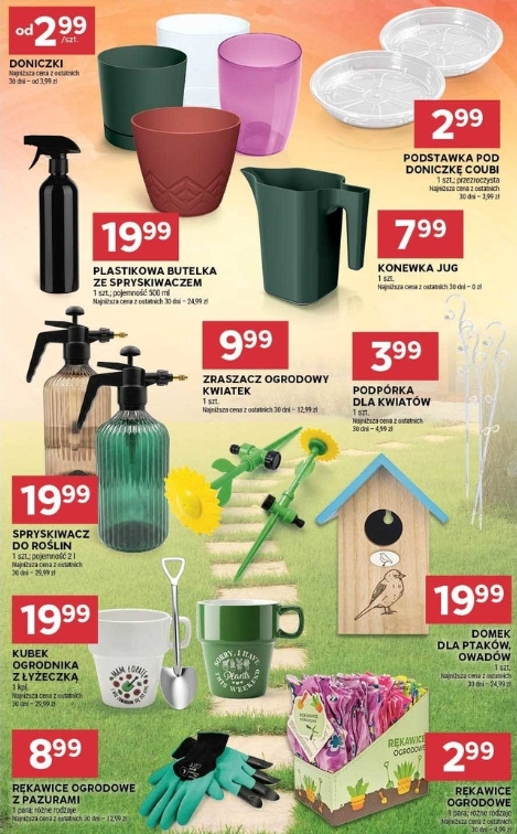 Oferta nie kończy się na nasionach i sadzonkach. Stokrotka przygotowała też sporo praktycznych rzeczy, które przydadzą się podczas prac w ogrodzie. W gazetce pojawiły się między innymi doniczki już od 2,99 zł, podstawki pod doniczki w podobnej cenie oraz konewka za 7,99 zł.