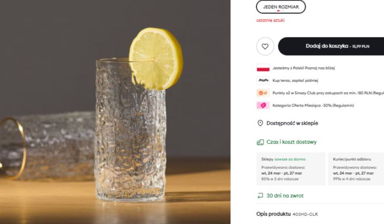 Czasem wystarczy jeden drobny element, żeby całkowicie zmienić charakter stołu czy kuchni. Właśnie takie są szklanki z Sinsay, które przyciągają uwagę nie tylko ceną, ale przede wszystkim wyglądem. Za komplet dwóch sztuk zapłacisz 15,99 zł, co oznacza, że jedna kosztuje około 8 zł – i trudno znaleźć coś równie efektownego w tej cenie.