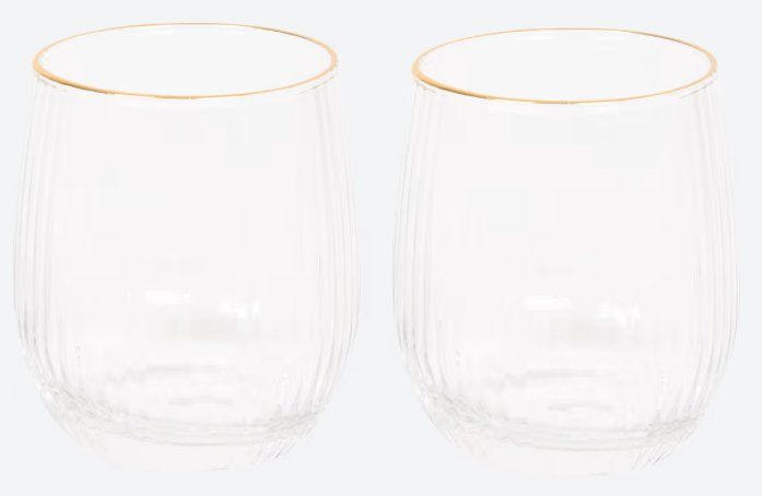 Do tego warto rozważyć szkło z delikatnym złotym rantem — szklankę 280 ml za 4,99 zł lub komplet dwóch szklanek 300 ml (9,95 zł). Złote wykończenie dobrze koresponduje ze złotym uchem kubka Arista, dzięki czemu cały zestaw prezentuje się spójnie, nawet jeśli poszczególne elementy pochodzą z różnych serii.