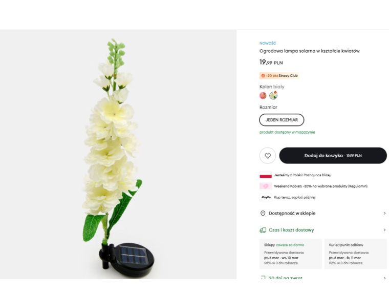 Wśród nowych dekoracji ogrodowych dostępnych w Sinsay pojawiła się lampka solarna w kształcie kwiatów przypominających lwie paszcze. Projekt nawiązuje do naturalnej rośliny – smukła łodyga, zielone liście i jasne kwiaty sprawiają, że dekoracja z daleka wygląda jak prawdziwa. Dopiero po zmroku okazuje się, że to subtelne źródło światła.