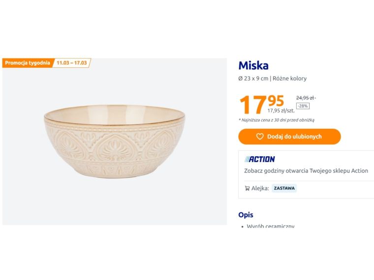 Warto pamiętać, że jest to promocja tygodnia w Action, która obowiązuje tylko do 17 marca. Produkty z takich akcji często znikają ze sklepów szybko, zwłaszcza gdy łączą atrakcyjną cenę z dekoracyjnym wyglądem. Jeśli więc ktoś szuka niedrogiej, a jednocześnie efektownej ceramiki do kuchni lub jadalni, ta kolekcja może okazać się jednym z ciekawszych znalezisk w aktualnej ofercie Action.