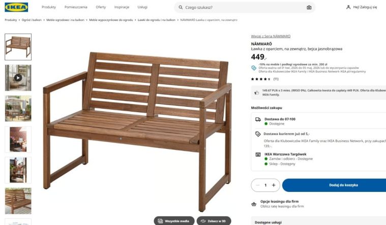 Na uwagę zasługuje też aktualna promocja. Do 5 maja 2026 roku obowiązuje rabat -10% na meble ogrodowe przy zakupach za minimum 200 zł dla członków IKEA Family i IKEA Business Network, co dodatkowo zwiększa atrakcyjność zakupu. To dobry moment, by rozważyć zakup takiego mebla w niższej cenie i uzupełnić swoją przestrzeń na świeżym powietrzu.