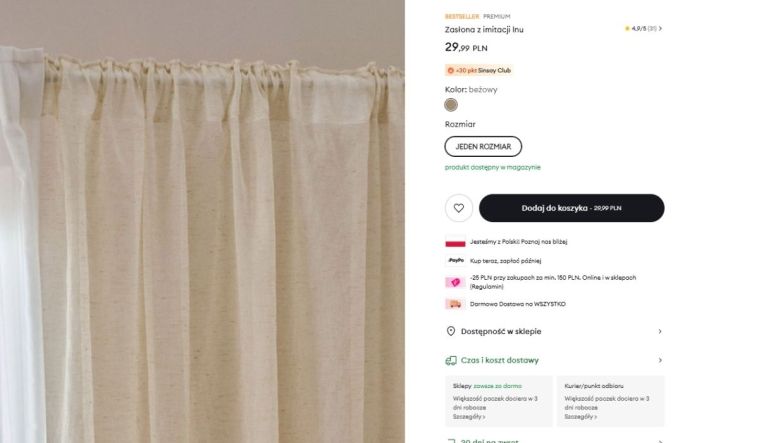 Zasłona z Sinsay z kolekcji premium przyciąga prostotą i naturalnym efektem. To lekka tkanina, która od razu ociepla wnętrze