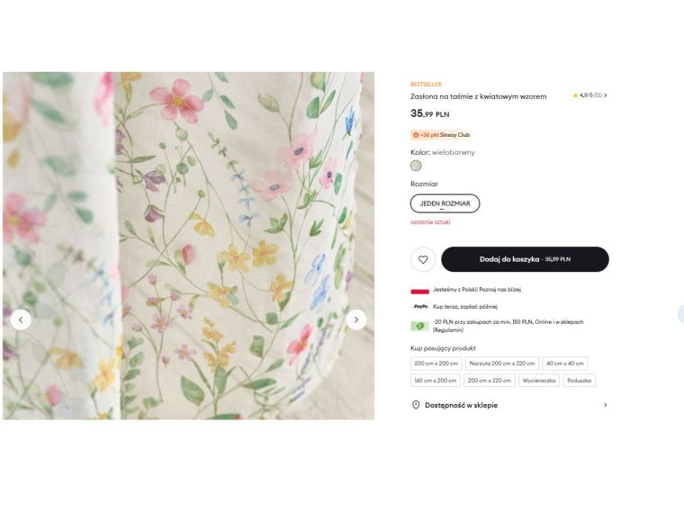 Przy takich produktach cena robi ogromną różnicę, bo od razu pojawia się pytanie, czy to będzie wyglądało dobrze także na żywo. Tutaj wiele wskazuje na to, że tak właśnie jest. Ocena 4,9 na 5 mówi sama za siebie, a opinie są bardzo konkretne. Jedna z klientek Sinsay napisała, że zasłonki są cienkie, przeźroczyste i właśnie o taki efekt jej chodziło. Do tego zwróciła uwagę na wiosenny wzór i dobre obszycie. Druga podkreśliła, że tkanina jest piękna i bardzo dobrze prezentuje się w oknie.