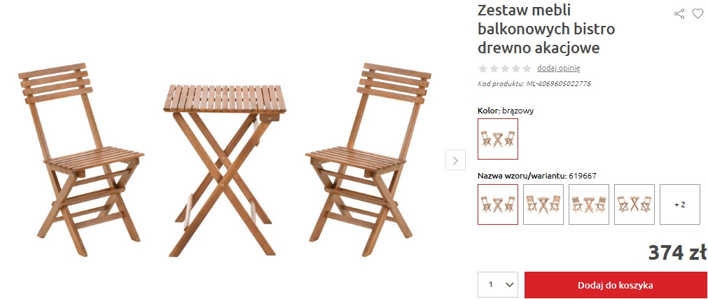 Także i w tym przypadku postawiono na składanie, co jest kluczowe przy aranżacji małego metrażu. Meble można szybko złożyć i oprzeć o ścianę, gdy balkon ma służyć do suszenia prania czy przechowywania. W porównaniu z propozycją z Black Red White zestaw z Lidla wypada jednak nieco drożej.