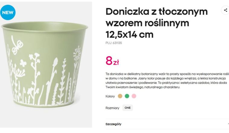 Nowość w Pepco to doniczki, które od razu wpisują się w aktualne trendy wnętrzarskie. Mają delikatny, tłoczony wzór inspirowany roślinnością – subtelne łodygi, liście i drobne kwiaty tworzą dekorację, która nie dominuje, ale pięknie uzupełnia aranżację. Dostępne są w trzech kolorach: białym, różowym i zielonym. Każdy z nich utrzymany jest w lekkiej, pastelowej tonacji, dzięki czemu łatwo dopasować je do różnych stylów – od skandynawskiego minimalizmu po romantyczne, przytulne wnętrza.