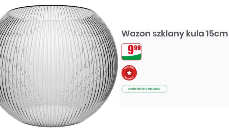 Jedynie 9,99 zł za szklany, dekoracyjny wazon to nie jest wydatek, który mocno obciąża portfel. A efekt po przyniesieniu do domu potrafi naprawdę cieszyć. Czasem właśnie takie małe zakupy poprawiają wnętrze bardziej niż duże zmiany. Nowy obrus, świeże kwiaty i taki wazon potrafią sprawić, że całe pomieszczenie wygląda czyściej, przytulniej i po prostu ładniej.