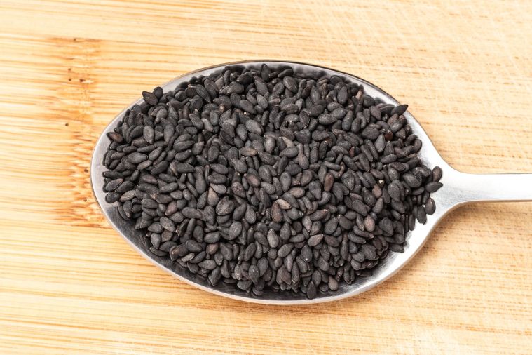 - Zmiel 2–4 łyżki czarnego sezamu na drobny proszek.