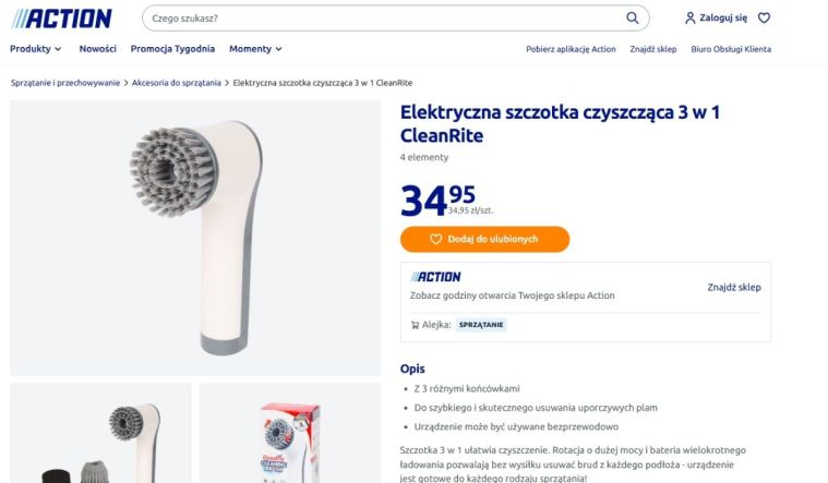 Jak wspomniałam, Tiktokerka na filmiku do umycia podłogi użyła specjalnej szczotki czyszczącej, która również jest dostępna w Action. Oczywiście nie kosztuje wiele, bo zaledwie 34,95 zł. Jest to model 3w1 do szybkiego i skutecznego usuwania uporczywych plam. Działa bezprzewodowo, więc jego użytkowanie jest niezwykle wygodne.