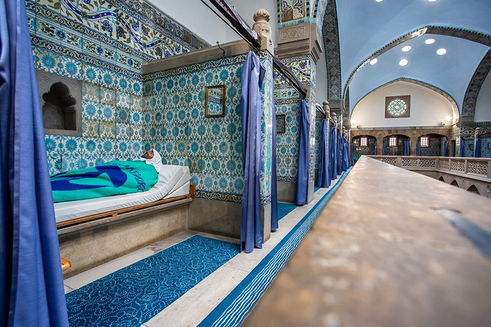 Nietypowe są również przebieralnie – nie ma tu klasycznych szatni. Zamiast nich pod arkadami ukryte są małe pokoiki, w których czekają płócienne stroje: długie sukienki dla kobiet i krótkie spódniczki dla mężczyzn. To element rytuału, który tylko dodaje temu miejscu uroku i podkreśla jego wyjątkowość.