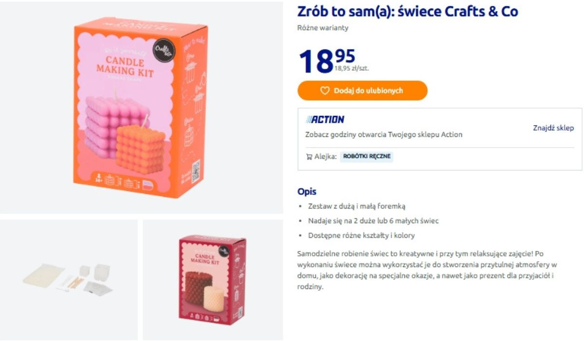 Jeśli spodoba ci się taki sposób spędzania czasu, Action ma dużo więcej podobnych propozycji. W tej samej półce cenowej można znaleźć zestawy do robienia świec, które również cieszą się dużym zainteresowaniem.