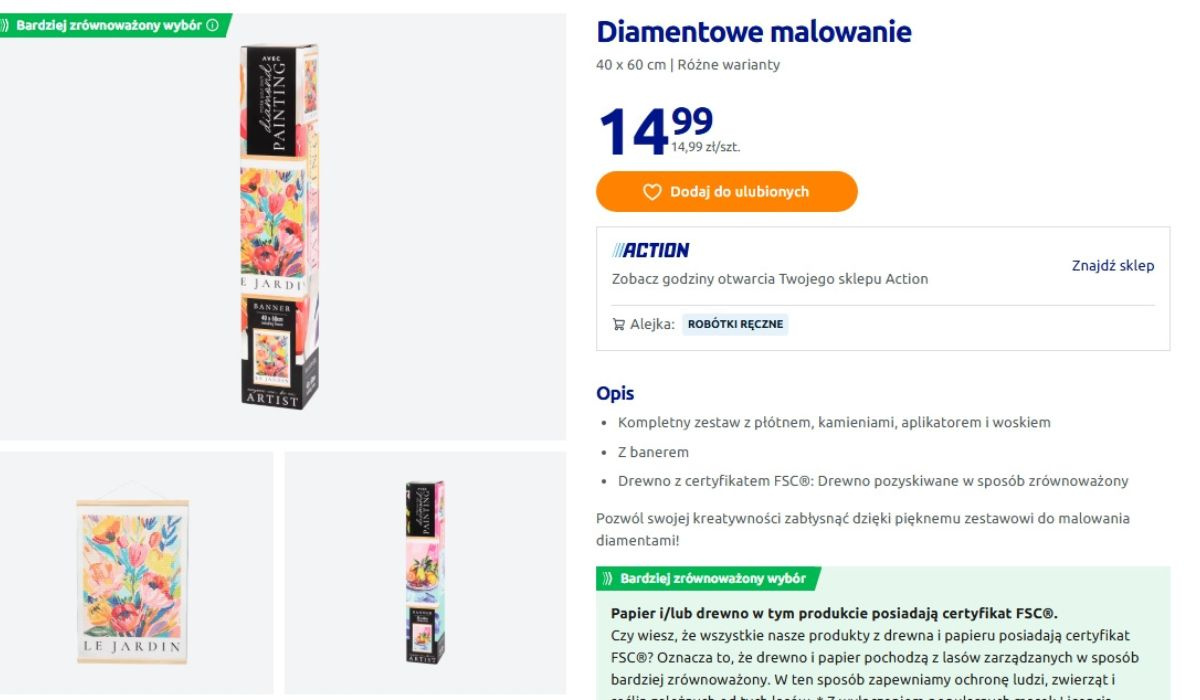 Action coraz mocniej stawia na produkty kreatywne i widać, że trafia w potrzeby klientów. To nie są już tylko gotowe dekoracje, ale rzeczy, które można współtworzyć i dopasować do siebie. Jednym z hitów jest malowanie diamentowe. To zajęcie, które wciąga i daje bardzo efektowny rezultat. Gotowy obraz wygląda jak mozaika i może być piękną ozdobą ściany albo półki.