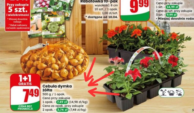 Bowiem przeceniono cebulę dymkę. Tylko do jutra można kupić woreczek 500 g cebuli 1+1 gratis. Przy zakupie dwóch sztuk za jeden woreczek płacimy tylko 3,74 zł. Warto od razu brać kilka. Wiosna to idealny czas na zasadzenie cebuli dymki w przydomowym ogrodzie, a także w doniczkach na balkonie, tarasie lub parapecie.