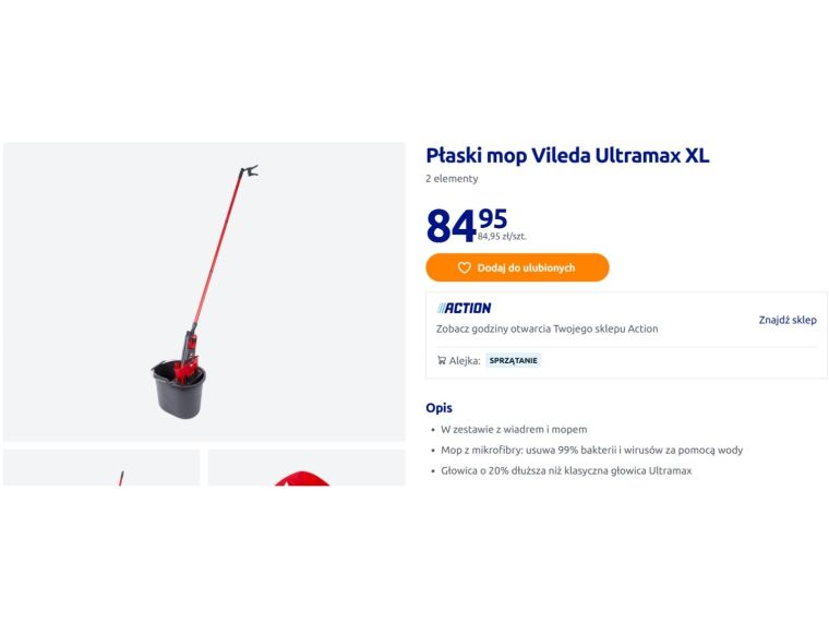 Action oferuje popularny zestaw sprzątający w bardzo dobrej cenie. Vileda Ultramax XL przyciąga uwagę klientów