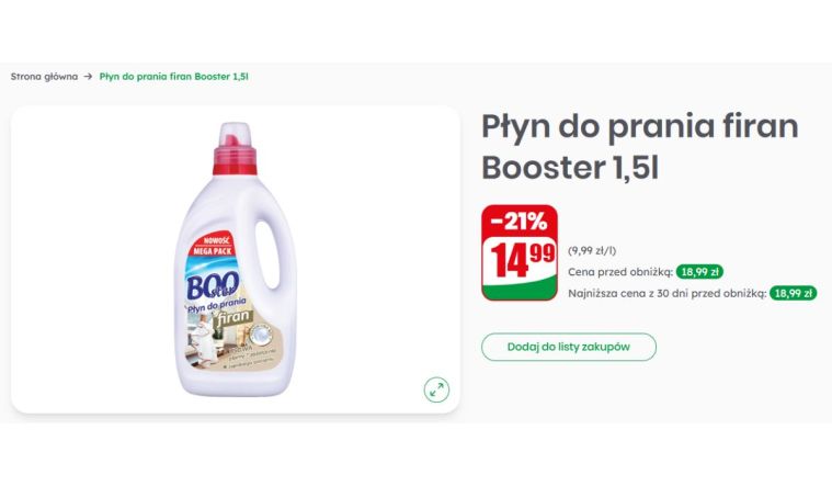 Nie da się ukryć, że 14,99 zł za 1,5 litra płynu do prania firan brzmi bardzo zachęcająco. Zwłaszcza że cena przed obniżką wynosiła 18,99 zł, więc różnica jest odczuwalna i przy większych zakupach naprawdę robi się z tego miła oszczędność. Właśnie takie produkty lubię najbardziej, bo nie kosztują fortuny, a mogą uratować coś, co już zaczyna wyglądać na stare i zaniedbane.
