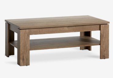 Stolik oferuje sporą powierzchnię użytkową o wymiarach 110 cm długości i 60 cm szerokości, a jego wysokość, 45 cm, jest dopasowana do standardowych rozmiarów sof i kanap. Wykończenie w kolorze ciemnego dębu nadaje mu powiewu luksusu, a dodatkowa dolna półka znacząco zwiększa jego funkcjonalność. Pozwali ci również na wygodne przechowywanie pilotów czy książek.