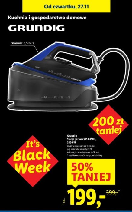 Lidl po raz kolejny wprowadza do swojej oferty urządzenie, które potrafi zrobić furorę. Tym razem chodzi o stację parową Grundig, która w czasie Black Week pojawi się w sklepie z potężną obniżką. Cena spada z 399 zł do jedynie 199 zł, co czyni tę propozycję jedną z najatrakcyjniejszych w tegorocznym przedświątecznym okresie.