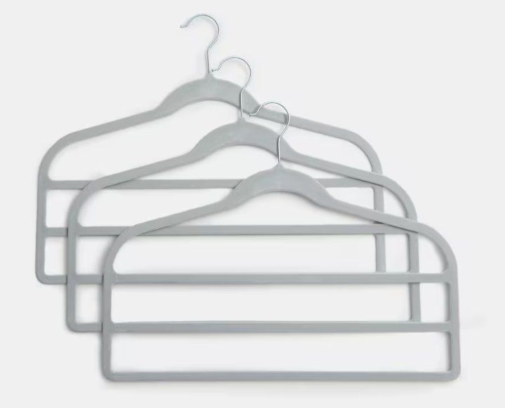 Dodatkową zaletą tych wieszaków jest to, że zostały pokryte welurowym materiałem, dzięki czemu ubrania nie ześlizgują się z nich i nie spadają. Sprzedawane są w zestawach po 3 sztuki za 15,99 zł, co oznacza, że za jeden taki duży wieszak płacimy tylko 5,33 zł.