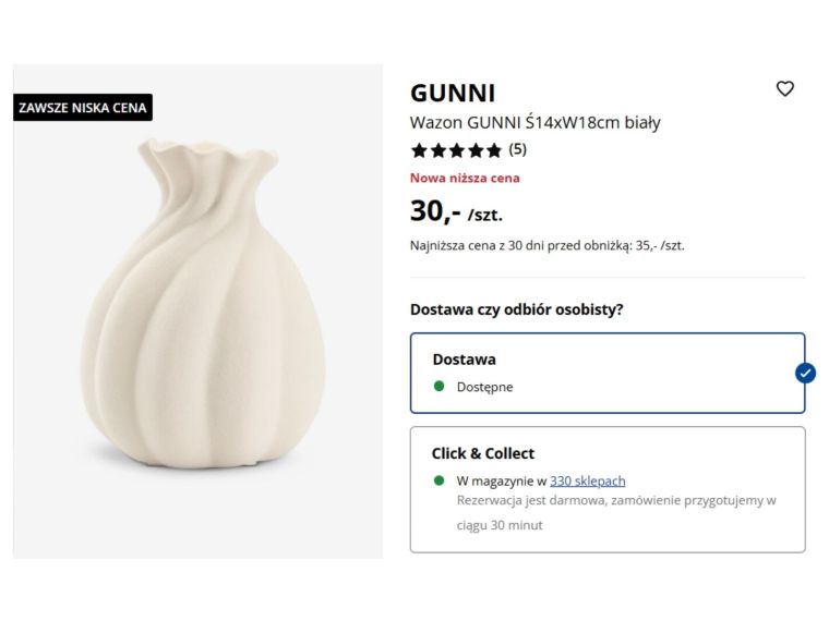 Największe zaskoczenie pojawia się jednak w momencie porównania cen. Wazon Blom z Westwing kosztuje 249,90 zł, co dla wielu osób może być sporą inwestycją jak na dekorację. Z kolei wazon GUNNI z Jysk można kupić za około 30 zł w promocyjnej ofercie sklepu. Oznacza to różnicę przekraczającą nawet 200 zł, mimo że oba modele wpisują się w ten sam trend wnętrzarski.