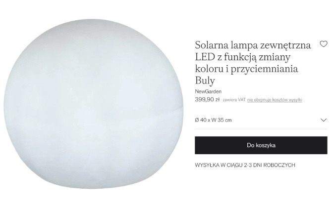 Lampa solarna z Westwing ponad 4x droższa niż w Obi