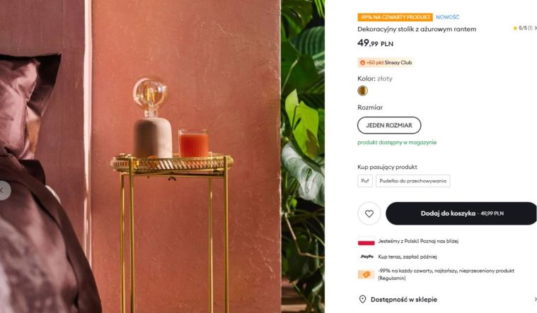 Czasem trafiam na takie rzeczy, które od razu wiem, że nie mogą zostać na półce. Tak właśnie było tym razem. Szukałam czegoś niewielkiego na balkon, czegoś co nie zagraci przestrzeni, a jednocześnie doda jej charakteru. I nagle zobaczyłam ten stolik. Złoty, lekko błyszczący, z ciekawym wykończeniem. Od razu wyobraziłam sobie, jak będzie wyglądał u mnie przy kawie. Pomyślałam też, że w końcu znajdę miejsce na książkę i małe dekoracje, które do tej pory nie miały gdzie stać.