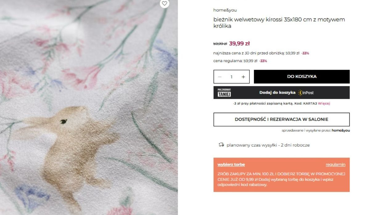 Home&You wyprzedaje welwetowy bieżnik z wielkanocnym wzorem 33% taniej i trudno się dziwić, że znika z półek. Ten model od razu przyciąga spojrzenia