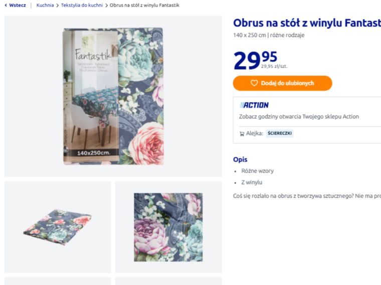 Wielkanoc to moment, kiedy szczególnie zwracamy uwagę na dekorację stołu. Kolorowe pisanki, świeże kwiaty i eleganckie nakrycie tworzą wyjątkową atmosferę rodzinnego spotkania. Dlatego dobry obrus jest jednym z najważniejszych elementów świątecznej aranżacji. W Action można znaleźć model, który łączy atrakcyjny wygląd z bardzo praktycznym rozwiązaniem – winylowy obrus Fantastik kosztuje tylko 29,95 zł, a przy tym jest odporny na plamy i niezwykle łatwy w czyszczeniu.